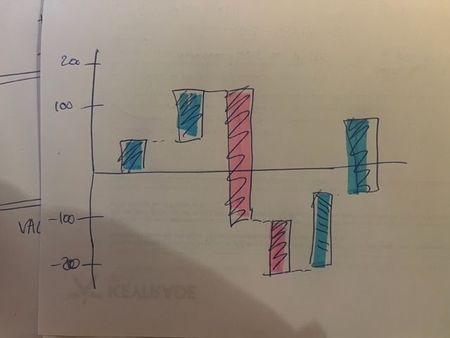 I use a column graph but I do not manage to do it when the numbers turn negative as per the drawing below. Any help would be amazing!