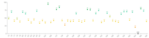 Essentially I would love to know how to achieve a scatter graph like this with conditions for the colour of points depending on the number. E.G 45 - 65 is Light Green etc Thanks for any help