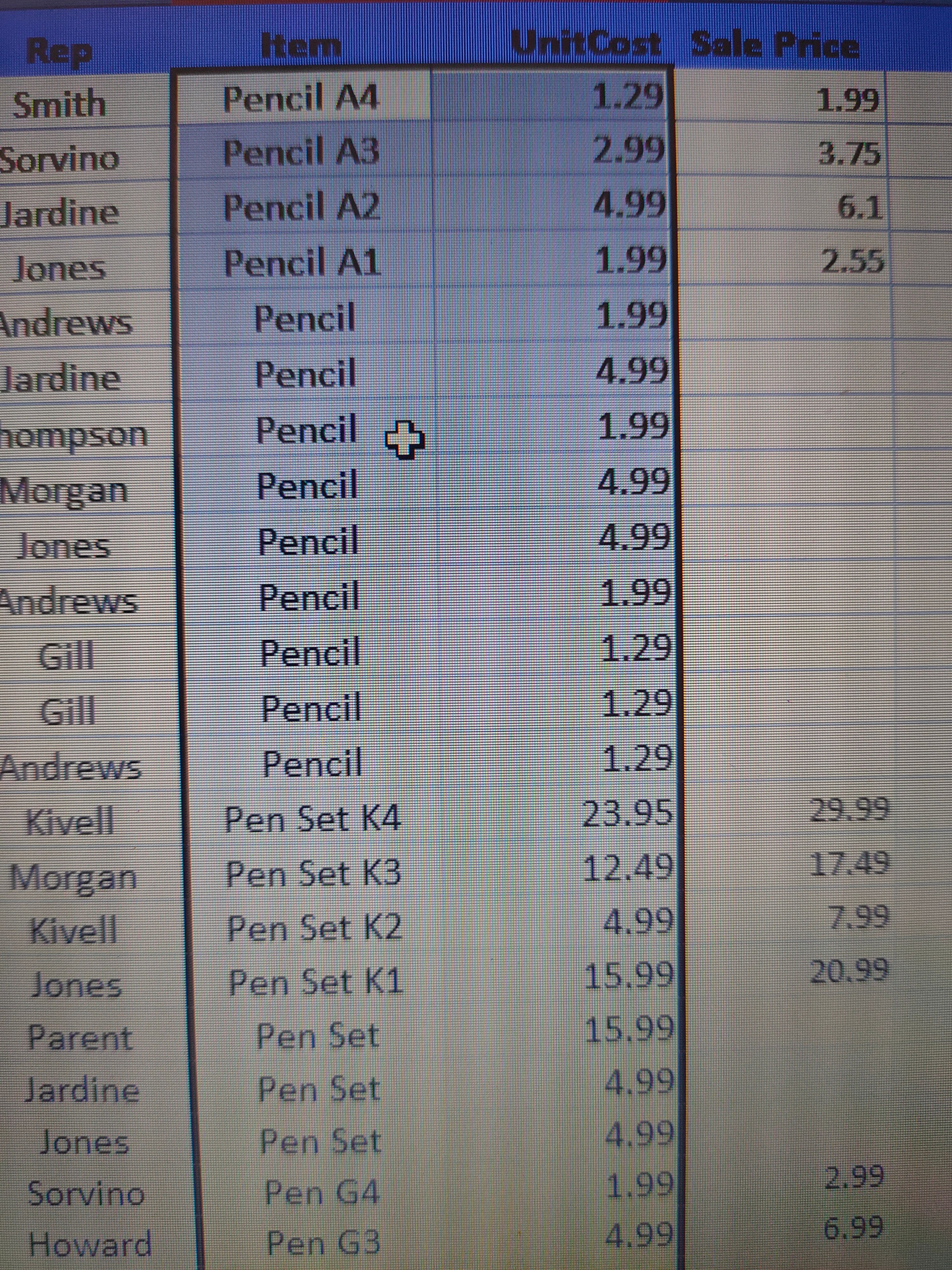 How to arrange the specific item names with respect to their unit cost prices ?