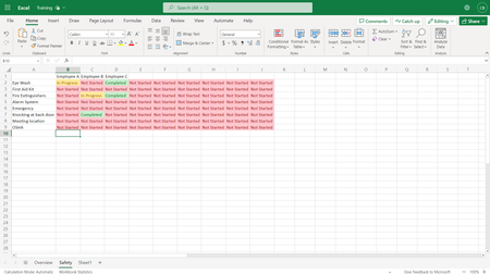 To get the overall progress color read-out, you can use conditional formatting based on the calculated percent complete. Select the range of cells you want to format, go to the "Home" tab, click on "Conditional Formatting," and choose "Color Scales" or "Icon Sets" to apply color formatting based on the percent complete.