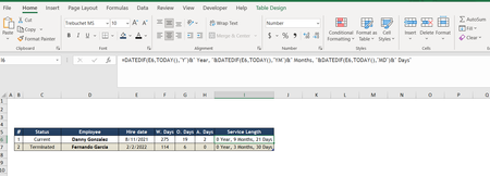 This is the formula I’m using the calculate the time a employee has worked for me. However I’m trying to figure out how to stop the counter once they are terminated. Does anyone have a be...