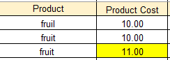 Price list is pre-filled with product and cost. However, client may change the cost if needed. Looking for formula/formatting so that when cost is changed, the cell fill color changes to alert of c...