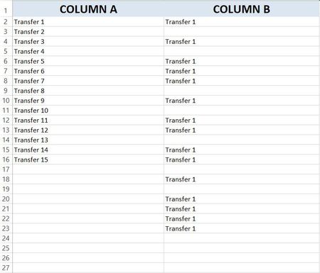 I have provided the screenshot of my excel worksheet. I want to rename the cells in column B chronologically same as Column A but without losing the blank cells. i.e the first "transfer" name cell of...