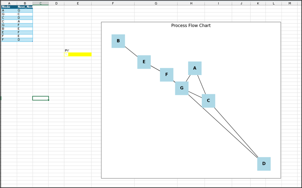 I’d like it to figure out a table/chart (but with arrows) like the attached image. It may have optional paths. Doesn't have to be like a flow chart, if there's another way for excel to analyze it. I don't *think* this is a complex b-tree sort of problem...