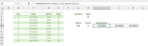 Hi, I want to spill a date list according to Name in a row (maybe Filter is not the best, any better formula?), and some color to format according Type condition. I tried many formulas in the rule bu...