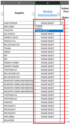 Range(Range("G2"), Range("F1").End(xlDown).Offset(0, 1)).Value = "PLEASE SELECT"