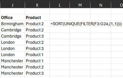 I want to show the unique Products by Office, which I can do like this...