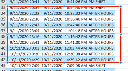 Citychick The original post was about how to include a shift that goes past midnight as a shift of the previous day. In your case, first make sure that you have the times entered as real time values. Not a text that looks like a time. Then, be aware that Excel stores time as a number representing the part of the day that has passed. So 8 am = 0.333333333 (i.e. one third into a 24hr day). Thus, when calculating with time, use such number representations or better use the TIME function.