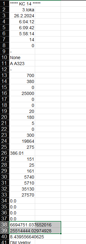 I have multiple point data's like this in one work sheed and i need to get function on highlighted spot based on the ***** KC 14 ****** that is always first row in point data.