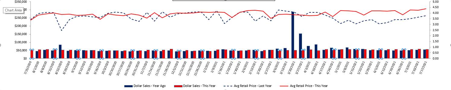I am currently having trouble with a bar graph and want to know how to make the columns stand directly next to each other from current year to last year. Any guidance on this would be much appreciated! Thank you!