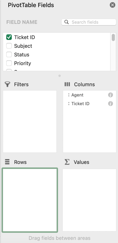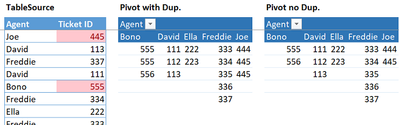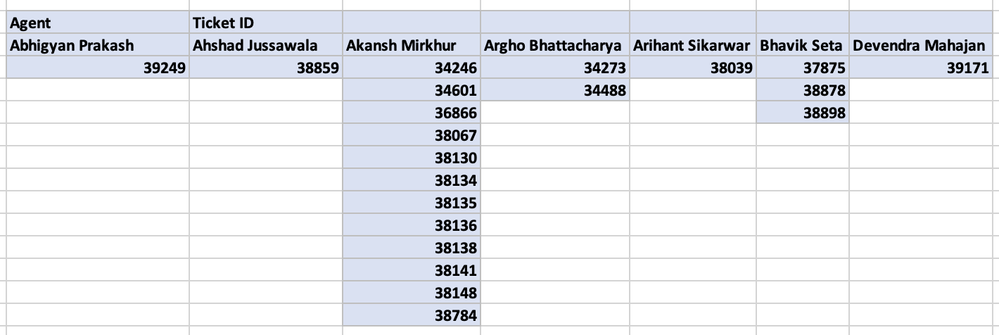 In pivot, I basically want to arrange 2 values - Agent & Ticket ID.
