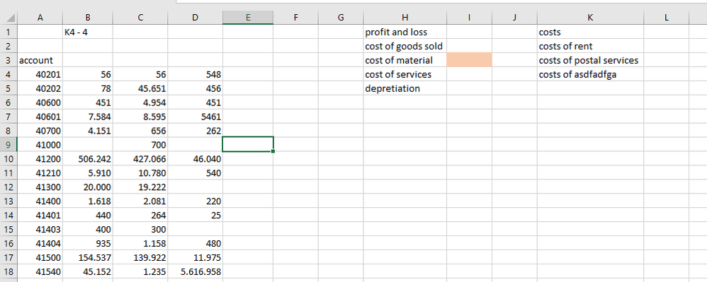 Riny_van_Eekelenthank you for your answer. I actually did it with sumif. I added two more columns next to each account, wrote the P&L item (income, costs....etc...) and did the whole P&L sheet and costs sheet with sumifs. Thank you for the formula ("40*"), might use this one next time.