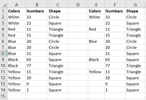 - Now select the first cell in column A below the column header 'Color', in this case, it would be cell A3 as per your sample data and press Ctrl+Shift+Down Arrow Key to select all the visible values in column A.