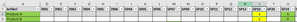 =IFERROR(INDEX($1:$1,AGGREGATE(15,6,1/($B2:$AA2="x")*(COLUMN($B$2:$AA$2)-COLUMN($A$5)+1), (COLUMN()-COLUMN($A$5)))),"")