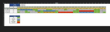 I have roster that shows 3 Employees complete month shift. What formula will show the working days left as the days get over. I mean the working days left should automatically remove the Offs based ...