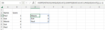 From a large data set, I’m generating a list of unique names with =UNIQUE(...). Next to those unique names there’s a simple =SUMIFS(...) giving the totals. All is good. I can use =Sort(Unique(...)) to sort by the unique name, but how can I sort by the totals in the sumifs column. Thought it would easy; tried searching the forum, tried sortby(), but can’t get it. Would prefer not to have to introduce pivot tables or the table functionality. Thanks.
