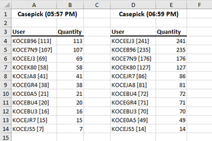 I know I can just do something like =E4-B6 but is there a way for it to look up by the User ID and subtract the quantities with matching Users?