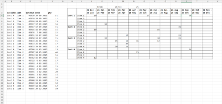We have a table to summarize such that data is arranged by customer within specific dates. For example, 26 th to end of month plus the next 25 days as shown in this figure. How can this be done ...