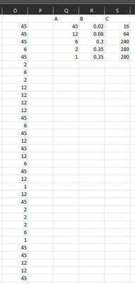 Hi I want select element from a list randomly but respecting some frequency value. So I have 5 element: A=(45, 12, 6, 2, 1) and the related frequency; B=(0.02, 0.08, 0.30, 0.35, 0.35) respectively. ...
