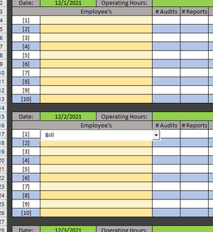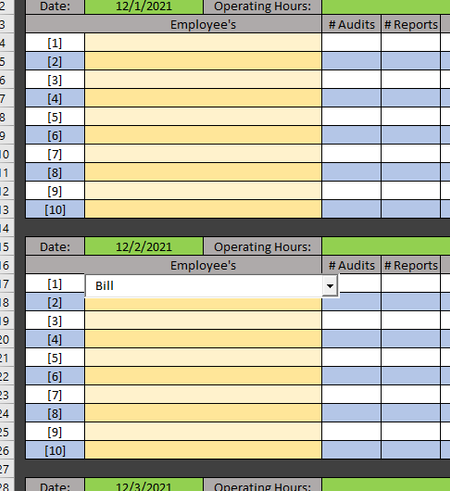 Personally, I would collect all data in a single table (date, employee, #audits,#reports, etc. ) and create summaries from that table. Per day, per employee, whatever, for example, by using a pivot table.