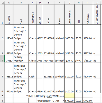 I'm a mediocre excel user, not an expert! I pretty much only use the Sum function. This time I need to total column G for the cells in column B that equal "Tithes and Offerings." How do I write that formula? My sheet attached.