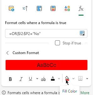Select fx (Format cells where a formula is True)