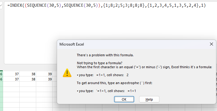 Excel will not let you enter this formula because SEQUENCE is not a reference. For reasons unknown to me, this syntax is still valid:
