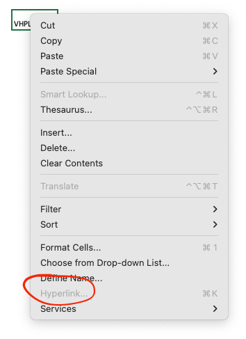 Hyperlink Option Greyed Out (Mac V16.67)