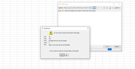 I am trying to get data from WEB in Excel but repetedly get an error