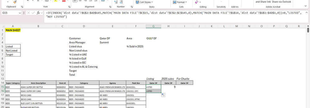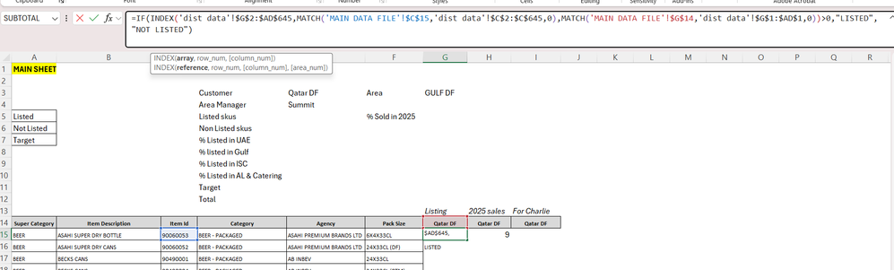 Formula has to move down the column and show the right value but it is showing the same value" listed" as the 1st column, formula is not moving down. pls help.