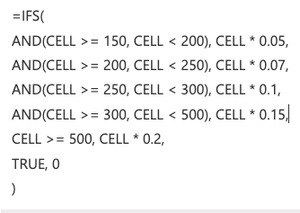 =L53*LOOKUP(L53,{0,150,200,250,300,500},{0,0.05,0.07,0.1,0.15,0.2})