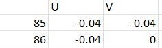 octarudin This is a common problem caused by precision issues with the floating-point arithmetic method used by Excel. While you would expect the result of =9.77-9.81 to be exactly -0.04, it's actually -0.0400000000000009 in Excel. You can see this by changing the formatting of cell U85 to Number format with 16 decimal places.