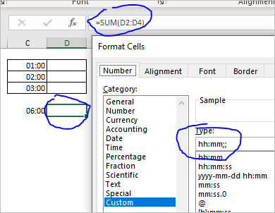 You may use SUM() or whatever function directly without checking the condition by IF(), just add two semicolons in custom format for such cells