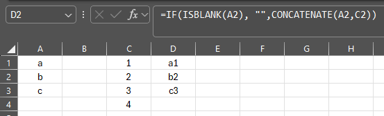 In this formula, if the cell in column A is blank, it leaves the cell in column D blank.