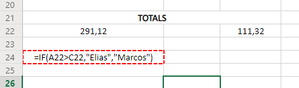 I'm trying to use the IF formula to display a different name, depending if a cell number is greater than another, but it just turns the cell borders dotted red. Any ideias what the problem is? ...