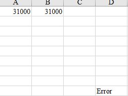 capri01 Hi, have you checked if there is some difference in both the 31000s. I mean the image you have shared does not show decimals. Try to elaborate the cell content by increasing decimal values to each of those figures. See my attachment, although both looks same there is some point difference which puts "Error" in the formula cell. I hope this helps.