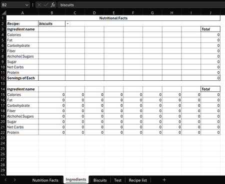 ThayerT The fact that "Biscuits!B2:I12" works for you, means that you can spill an entire range of cells in one go. Add the fact that you also seem to use structured tables to hold your recipes, you may want to try the following.