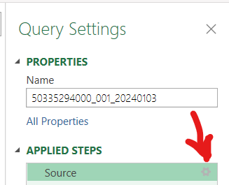 while in the PowerQuery editor go to QuerySettings and click on the settings button in the first line "Source" (see picture below).