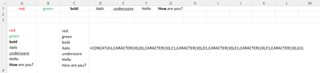 In Excel I am reporting the results in an Audit and need to show text in colors, bold, italics,