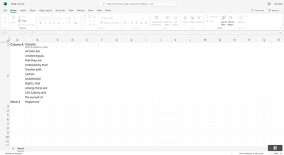 We’ve observed inconsistent behavior with the “Wrap Text” format across different Excel environments (Windows Desktop vs. Web).