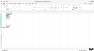Cell content formatted with Wrap Text should display consistently across all Excel platforms (Windows, Mac, and Web) without requiring manual adjustment or reapplication.
