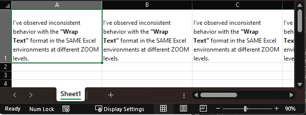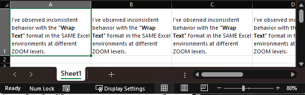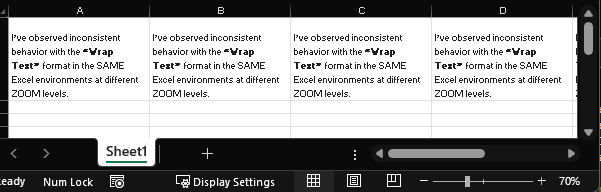 We’ve observed inconsistent behavior with the “Wrap Text” format across different Excel environments (Windows Desktop vs. Web).