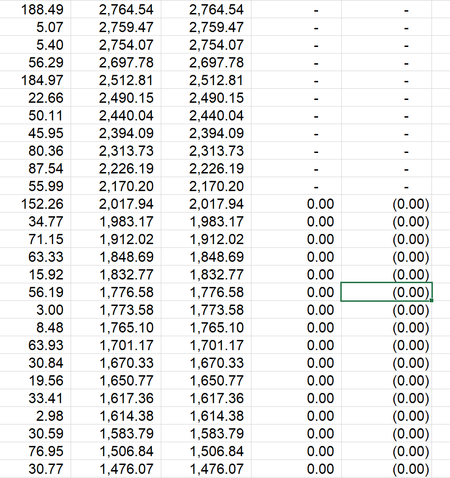 However, it bothers me to not understand why this is happening. I have checked all the numbers in the Formula Bar and none have more than 2 decimal places. Formatting and formulas have all be copied to ensure they are consistent.