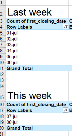 I have a big table with transactions from 01-Jan-2019 until today (more then 100 000 rows so all dates have transactions). I want to make pivot tables where I filter on this and last week. But I ...