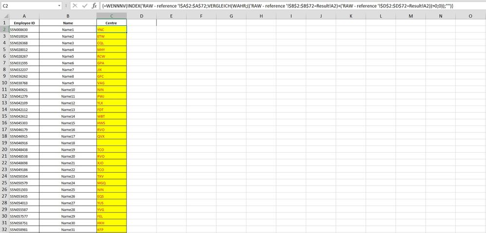 =IFNA(INDEX('RAW - reference '!$A$2:$A$72,MATCH(TRUE,(('RAW - reference '!$B$2:$B$72=Result!A2)+('RAW - reference '!$D$2:$D$72=Result!A2))>0,0)),"")