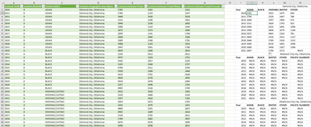 Hello, I'm trying to sort a large data set to based on city, race, and year. so far I've been using =IF($C2=J$2,$E2,NA()) to do so. but I'm adding other races within the data set so the values posi...