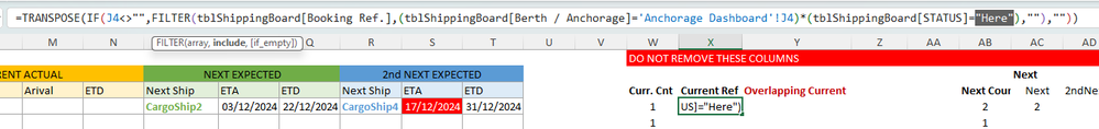 This formula is getting a list of booking references for all ships berthed in that location AND where the status is HERE.The dashboard uses the Reference Number in X4 to lookup the ship details