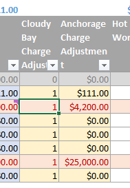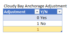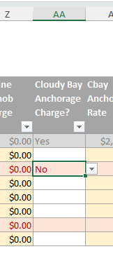 Regarding the Anchorage Charge, it does work, but it required you to say "No" in column AAI added a "blank" entry on the lookup table as it only had Yes and No,
