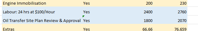 At the moment we can make "yes" for columns such as pre-arrival for received, or hot work completed. We then have to manually check the prices and add it to the invoice column.