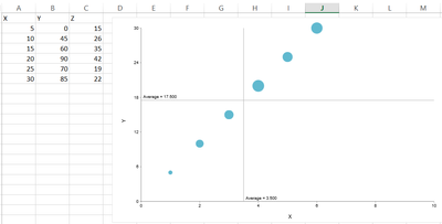 Hopefully, I understand your question. Let me explain what I did enter data in 3 columns X, Y, and Z.X column data map on the x-axis and Y column data mapping on the y-axis and if you notice Z column data mapping with circle size in the chart.